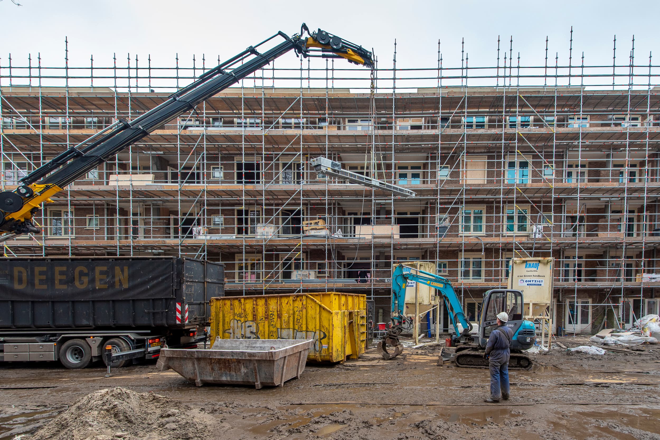 19.01.2026 Woningcorporatie Rochdale renoveert en sloopt twee woningblokken in de Amsterdamse Kolenkitbuurt. In 2019 ging de vernieuwing van het middendeel van de Kolenkitbuurt van start. Reden: de woningblokken tussen de Akbarstraat, Sinjeur Semeynsstraat en Wiltzanghlaan zijn er slecht aan toe.198 woningen aan de Akbarstraat, Schaapsherderstraat en Wiltzanghlaan worden niet gesloopt maar hoogwaardig gerenoveerd. Het tegenovergelegen complex met 222 sociale huurwoningen maakt wél plaats voor nieuwbouw waarbij flink wordt verdicht. Fotografie Hans van der Vliet Zie ook Rochdale en bewoners worstelen met vernieuwing Kolenkitbuurt Schinkelkwartier: een kijkje in een stadswijk in wording Trefwoorden Gebiedsontwikkeling Stadsdeel West Transformatie Rochdale WONINGPRODUCTIE Image Image Image Image Image Image Image Image Image Image Image Image