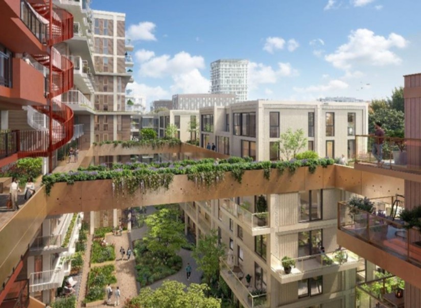 Aan de Naritaweg nabij NS-station Sloterdijk verrijzen in totaal vier duurzame woongebouwen. Het ontwerp van Next Architects bestaat uit een uniek ensemble met heel verschillende complexen rondom gemeenschappelijke tuinen, zo verklaart Philip Boswinkel van Local. Eén van de vier gebouwen wordt helemaal opgetrokken uit kruishout. Ook is bij het ontwerp nadrukkelijk geluisterd naar de wensen van de toekomstige bewoners. “Het mooiste voorbeeld is wel de bakfietslift met toegang tot de fietsenberging. Dit zorgt ervoor dat de openbaar gebied niet vol komt te staan met fietsen.”
