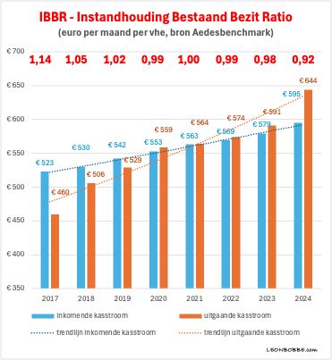 Portaal drukt dit tekort al een aantal jaren uit met een IBBR-ratio. Die geeft aan of er jaarlijks voor het in stand houden van de woning (onderhoud + verbetering) genoeg geld binnenkomt. Als er geld overblijft, kan dat worden besteed aan het aflossen van leningen of het financieren van nieuwbouw. Voor Portaal moet de IBBR-ratio boven de 1,0 liggen om financieel gezond te zijn. Een ratio lager dan 1,0 betekent een tekort dat met leningen moet worden gedekt.