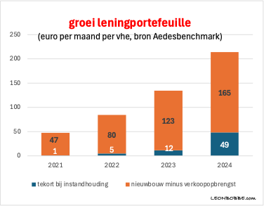 De Aedes-benchmark geeft ook inzicht hoe de tekorten voor instandhouding en nieuwbouw-investeringen met leningen worden gedekt.